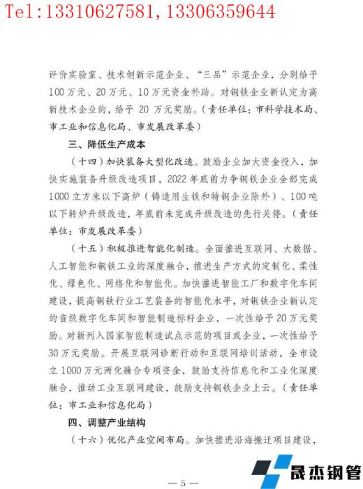 免責(zé)聲明:本網(wǎng)站(山東聊城晟杰無(wú)縫鋼管廠m.yztongfa.com)刊載的“鼓勵(lì)重組、加快搬遷、未改關(guān)停唐山市打造精品鋼鐵萬(wàn)億級(jí)產(chǎn)業(yè)!”等均源于網(wǎng)絡(luò),版權(quán)歸原作者所有,且僅代表原作者觀點(diǎn),本文所載信息僅供參考。轉(zhuǎn)載僅為學(xué)習(xí)與交流之目的,如無(wú)意中侵犯您的合法權(quán)益,請(qǐng)及時(shí)聯(lián)系刪除。本網(wǎng)站刊登此篇文章并不意味著本站贊同其觀點(diǎn)或證實(shí)其內(nèi)容的真實(shí)性,我們不對(duì)其科學(xué)性、嚴(yán)肅性等作任何形式的保證。如果侵犯了您的版權(quán),請(qǐng)盡快聯(lián)系我們予以撤銷,謝謝合作!