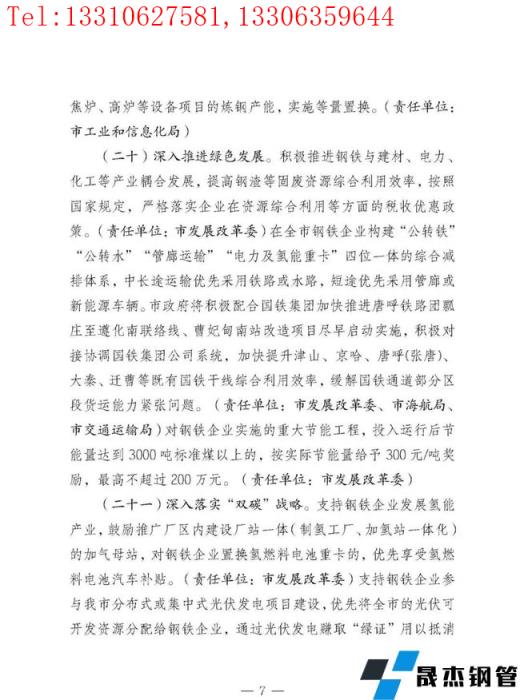 積極推進(jìn)鋼鐵與建材、電力、化工等產(chǎn)業(yè)耦合發(fā)展,提高鋼渣等固廢資源綜合利用效率,按照國(guó)家規(guī)定,嚴(yán)格落實(shí)企業(yè)在資源綜合利用等方面的稅收優(yōu)惠政策。在全市鋼鐵企業(yè)構(gòu)建"公轉(zhuǎn)鐵""公轉(zhuǎn)水""管廊運(yùn)輸""電力及氫能重卡"四位一體的綜合減排體系,中長(zhǎng)途運(yùn)輸優(yōu)先采用鐵路或水路,短途優(yōu)先采用管廊或新能源車輛。對(duì)鋼鐵企業(yè)實(shí)施的重大節(jié)能工程,投入運(yùn)行后節(jié)能量達(dá)到3000噸標(biāo)準(zhǔn)煤以上的,按實(shí)際節(jié)能量給予300元/噸獎(jiǎng)勵(lì),最高不超過(guò)200萬(wàn)元。