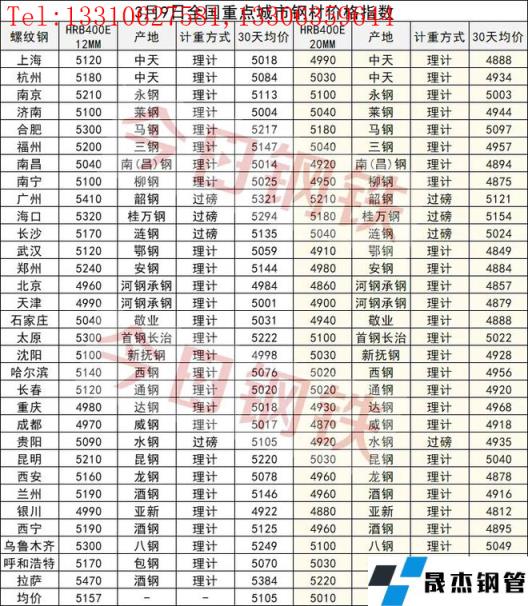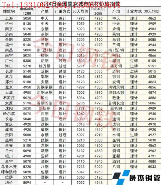 截至3月9日,全國主要城市20mm三級抗震螺紋鋼均價5010元/噸,周環(huán)比上漲64元/噸;12mmHRB400三級抗震螺紋鋼均價5157元/噸,周環(huán)比上漲63元/噸。以下為3月4日與3月9日全國重點(diǎn)城市螺紋鋼價格指數(shù)對比情況: