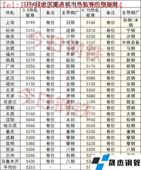 截至3月9日,全國主要城市3.0熱軋板卷均價5317元/噸,周環(huán)比上漲64元/噸;4.75熱軋板卷均價5241元/噸,周環(huán)比上漲63元/噸。以下為3月4日與3月9日全國重點(diǎn)城市熱軋板卷價格指數(shù)對比情況:
