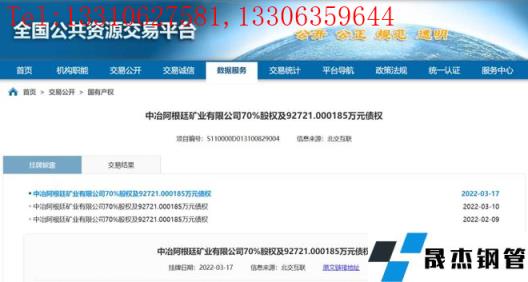 免責聲明:本網站(山東聊城晟杰無縫鋼管廠m.yztongfa.com)刊載的“6.4億!中冶股份轉讓一鐵礦70%股權及9.27億債權!”等均源于網絡,版權歸原作者所有,且僅代表原作者觀點,本文所載信息僅供參考。轉載僅為學習與交流之目的,如無意中侵犯您的合法權益,請及時聯系刪除。本網站刊登此篇文章并不意味著本站贊同其觀點或證實其內容的真實性,我們不對其科學性、嚴肅性等作任何形式的保證。如果侵犯了您的版權,請盡快聯系我們予以撤銷,謝謝合作!