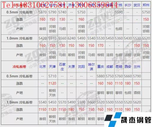 全國23個主要市場1.0mm 冷軋板卷平均價格5547元/噸,較上個交易日上調62元/噸。