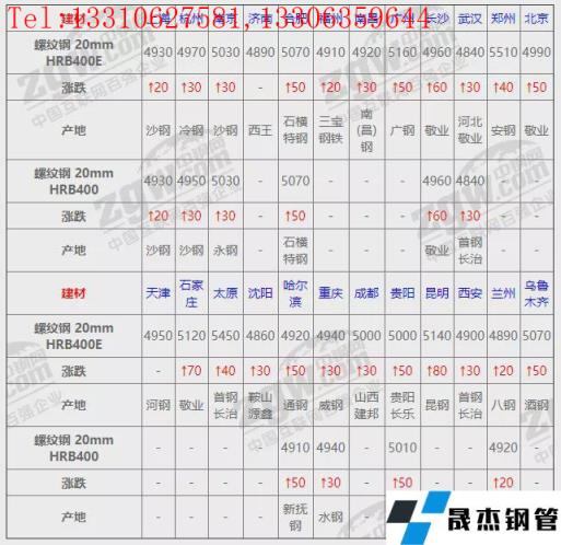 免責聲明:本網站(山東聊城晟杰無縫鋼管廠m.yztongfa.com)刊載的“2月11日全國鋼材_無縫鋼管實時價格!”等均源于網絡,版權歸原作者所有,且僅代表原作者觀點,本文所載信息僅供參考。轉載僅為學習與交流之目的,如無意中侵犯您的合法權益,請及時聯系刪除。本網站刊登此篇文章并不意味著本站贊同其觀點或證實其內容的真實性,我們不對其科學性、嚴肅性等作任何形式的保證。如果侵犯了您的版權,請盡快聯系我們予以撤銷,謝謝合作!