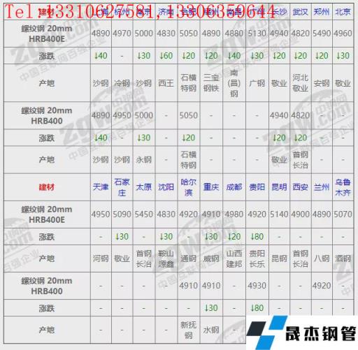 免責聲明:本網站(山東聊城晟杰無縫鋼管廠m.yztongfa.com)刊載的“2月14日全國鋼材_無縫鋼管實時價格!”等均源于網絡,版權歸原作者所有,且僅代表原作者觀點,本文所載信息僅供參考。轉載僅為學習與交流之目的,如無意中侵犯您的合法權益,請及時聯系刪除。本網站刊登此篇文章并不意味著本站贊同其觀點或證實其內容的真實性,我們不對其科學性、嚴肅性等作任何形式的保證。如果侵犯了您的版權,請盡快聯系我們予以撤銷,謝謝合作!