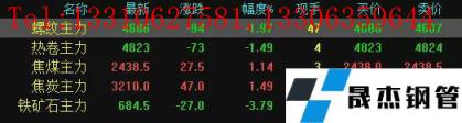 今日螺紋主力期貨跌94,收報4686,跌幅1.97%;熱卷主力跌73,收報4823,跌幅1.49%;焦煤主力漲27.5,收報2438.5,漲幅1.14%;焦炭主力漲47,收報3210,漲幅1.49%;鐵礦石主力跌27,收報684.5,跌幅3.79%。