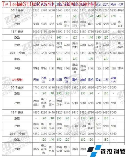 全國22個主要市場16# 槽鋼平均價格5308元/噸,較上個交易日下調(diào)19元/噸。