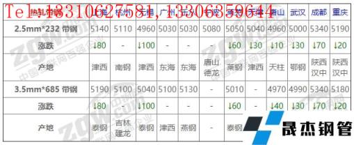 全國12個主要市場2.5mm*232 帶鋼平均價格5078元/噸,較上個交易日下調53元/噸。