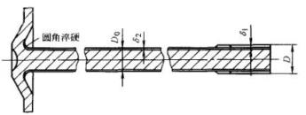 ▲圖3半軸工藝淬火硬化層與強度分布a)太淺b)合適c)太深桿部:硬化層深度應(yīng)達到桿部直徑的15%(δ2=15%D0)。法蘭根部:要求法蘭盤與桿部連接的過渡圓角淬硬。在實際生產(chǎn)中,圓角處硬化區(qū)域的最小直徑應(yīng)比半軸桿部直徑大25%。這些要求是為了保證半軸的靜強度和疲勞強度。花鍵與桿部的淬硬層深度對靜強度影響較大,法蘭圓角淬硬對疲勞極限影響較大。每種表面淬火半軸都有最佳的硬化層深,應(yīng)考慮到硬化層深對表層殘留壓應(yīng)力的影響。表6 列出了直徑為50mm的帶法蘭半軸感應(yīng)加熱淬火后花鍵尾根部位的殘留壓應(yīng)力。通常,感應(yīng)加熱淬火硬化層深度可以根據(jù)半軸桿部直徑的大小和產(chǎn)品設(shè)計結(jié)構(gòu)形狀來確定。對輕型載重車和小轎車的法蘭盤式半軸(桿部直徑在50mm以下)淬硬層深度可按下列要求確定(參閱圖4)。