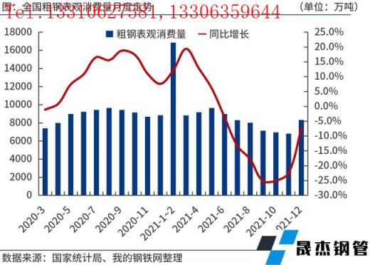 2021年12月份,全國(guó)粗鋼日均產(chǎn)量278.04萬噸,環(huán)比大增20.3%,預(yù)計(jì)1月份產(chǎn)量變化不大。臨近春節(jié)假期,鋼市進(jìn)入傳統(tǒng)需求淡季。不過,由于多部門集中出臺(tái)穩(wěn)增長(zhǎng)政策,市場(chǎng)情緒得到提振,加之無縫鋼管廠家集中補(bǔ)庫(kù),原燃料價(jià)格強(qiáng)勢(shì)上漲,推動(dòng)鋼價(jià)震蕩偏強(qiáng)運(yùn)行。今年我國(guó)基建投資有望發(fā)力,但房地產(chǎn)投資不容樂觀,鋼鐵消費(fèi)或弱于去年。如果節(jié)后無縫鋼管廠家適度控制產(chǎn)能釋放,合理安排復(fù)工復(fù)產(chǎn)進(jìn)度,實(shí)現(xiàn)供需動(dòng)態(tài)平衡,鋼價(jià)或延續(xù)震蕩偏強(qiáng)運(yùn)行。