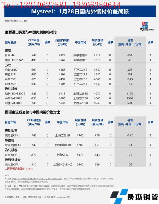 免責聲明:本網站(山東聊城晟杰無縫鋼管廠m.yztongfa.com)刊載的“2022年01月28日日報:國內外鋼材_無縫鋼管價差匯總(2022.1.28)”等均源于網絡,版權歸原作者所有,且僅代表原作者觀點,本文所載信息僅供參考。轉載僅為學習與交流之目的,如無意中侵犯您的合法權益,請及時聯系刪除。本網站刊登此篇文章并不意味著本站贊同其觀點或證實其內容的真實性,我們不對其科學性、嚴肅性等作任何形式的保證。如果侵犯了您的版權,請盡快聯系我們予以撤銷,謝謝合作!