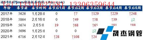 小編匯總近5年春節后四周彩涂板卷均價變化情況,以供參考。