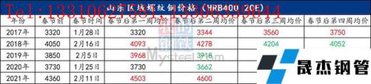 三、近五年山東建筑厚壁無縫鋼管春節均價走勢: