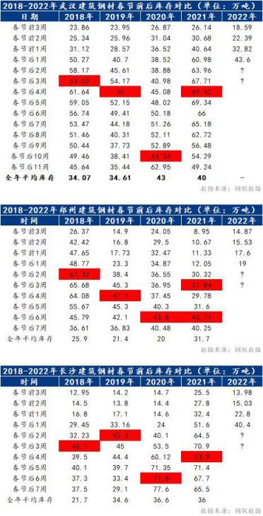 小編匯總近5年春節(jié)后7周中南區(qū)域建筑厚壁無(wú)縫鋼管庫(kù)存變化及庫(kù)存峰值時(shí)間節(jié)點(diǎn)。具體情況如下表所示: