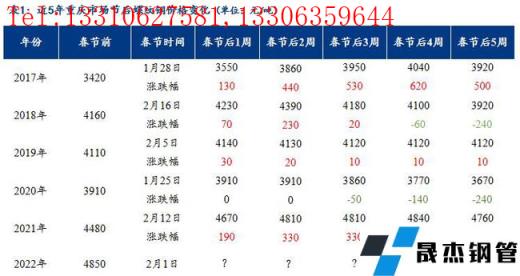 免責聲明:本網(wǎng)站(山東聊城晟杰無縫鋼管廠m.yztongfa.com)刊載的“近5年春節(jié)前后重慶螺紋鋼價格和庫存走勢”等均源于網(wǎng)絡,版權歸原作者所有,且僅代表原作者觀點,本文所載信息僅供參考。轉載僅為學習與交流之目的,如無意中侵犯您的合法權益,請及時聯(lián)系刪除。本網(wǎng)站刊登此篇文章并不意味著本站贊同其觀點或證實其內容的真實性,我們不對其科學性、嚴肅性等作任何形式的保證。如果侵犯了您的版權,請盡快聯(lián)系我們予以撤銷,謝謝合作!