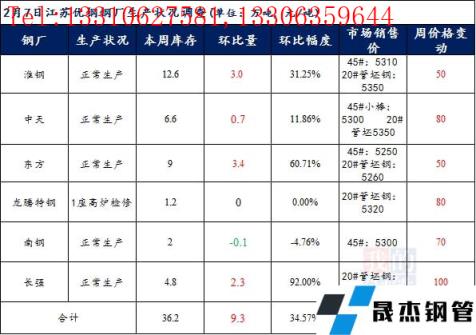 江蘇優特無縫厚壁鋼管廠家棒材總庫存36.2萬噸,較節前增9.3萬噸,增幅34.57%,較去年春節后庫存減少10.15萬噸。