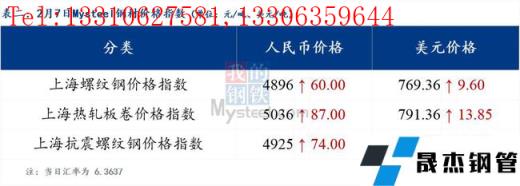 分地區(qū)方面,上海螺紋鋼價(jià)格指數(shù)4896,上漲60.0;上海熱軋板卷價(jià)格指數(shù)5036,上漲87.0。(單位:元/噸)