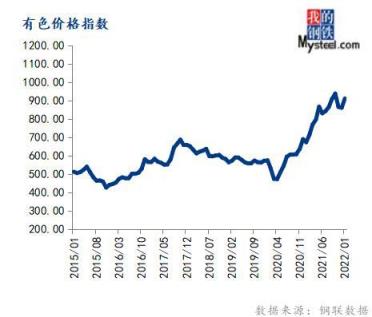 1月份有色價格指數為910.93,環比上漲5.88%,同比上漲35.47%。
