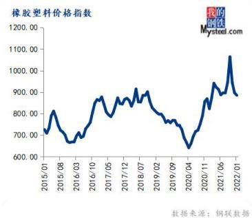1月份橡膠塑料價格指數為885.45,環比下跌1.29%,同比上漲7.55%。