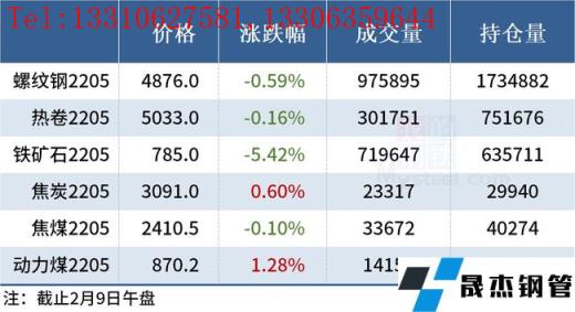 免責聲明:本網站(山東聊城晟杰無縫鋼管廠m.yztongfa.com)刊載的“2022年02月09日午報:鋼價多數上漲,鐵礦石期貨跌逾5%”等均源于網絡,版權歸原作者所有,且僅代表原作者觀點,本文所載信息僅供參考。轉載僅為學習與交流之目的,如無意中侵犯您的合法權益,請及時聯系刪除。本網站刊登此篇文章并不意味著本站贊同其觀點或證實其內容的真實性,我們不對其科學性、嚴肅性等作任何形式的保證。如果侵犯了您的版權,請盡快聯系我們予以撤銷,謝謝合作!