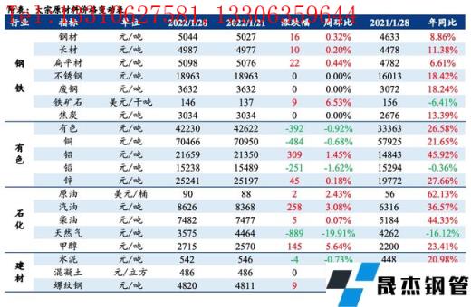 免責聲明:本網站(山東聊城晟杰無縫鋼管廠m.yztongfa.com)刊載的“大宗原材料價格周報(1.24-1.28)”等均源于網絡,版權歸原作者所有,且僅代表原作者觀點,本文所載信息僅供參考。轉載僅為學習與交流之目的,如無意中侵犯您的合法權益,請及時聯系刪除。本網站刊登此篇文章并不意味著本站贊同其觀點或證實其內容的真實性,我們不對其科學性、嚴肅性等作任何形式的保證。如果侵犯了您的版權,請盡快聯系我們予以撤銷,謝謝合作!