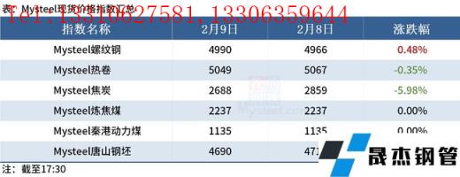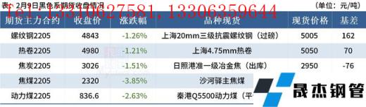 免責聲明:本網站(山東聊城晟杰無縫鋼管廠m.yztongfa.com)刊載的“2022年02月09日晚餐:黑色期貨全線跳水,鋼坯利潤升至345元”等均源于網絡,版權歸原作者所有,且僅代表原作者觀點,本文所載信息僅供參考。轉載僅為學習與交流之目的,如無意中侵犯您的合法權益,請及時聯系刪除。本網站刊登此篇文章并不意味著本站贊同其觀點或證實其內容的真實性,我們不對其科學性、嚴肅性等作任何形式的保證。如果侵犯了您的版權,請盡快聯系我們予以撤銷,謝謝合作!