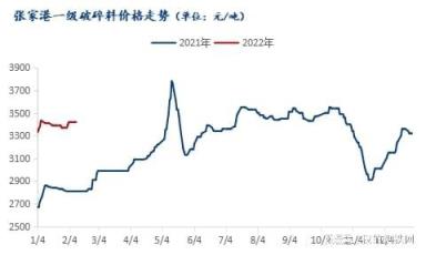 截止2月10日,張家港一級破碎料價格為3420元/噸,較春節前上調50元/噸,春節后破碎料價格偏強運行。從2月8日開始,破碎料加工商家陸續開工生產,由于人員到崗率偏低、物流車輛偏少,實際成交量比較萎靡,廢鋼資源量偏少,春節期間無縫厚壁鋼管廠家庫存降幅明顯,目前無縫厚壁鋼管廠家補庫需求比較大。綜上,預計短期破碎料價格以上漲為主。