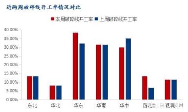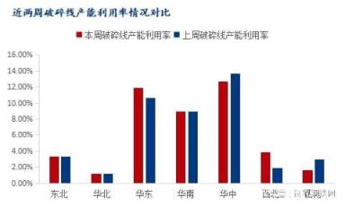 截止2月09日,統計全國242條廢鋼破碎線開工情況,廢鋼破碎線開工率為26.64%,較上周增2.87%,本周全國廢鋼破碎線開工率小增。全國區域對比看,東北、華北、華南、西南地區破碎線開工率較上周持平,華東地區破碎線開工率較上周增6.25%,華中地區破碎線開工率較上周降5%,西北地區破碎線開工率較上周增6.67%。