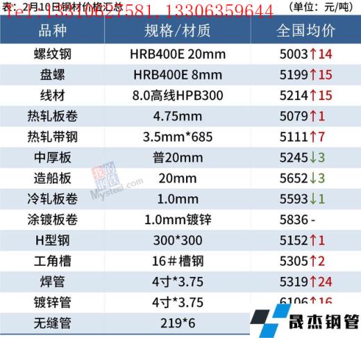 建筑厚壁無(wú)縫鋼管:2月10日,全國(guó)31個(gè)主要城市20mm三級(jí)抗震螺紋鋼均價(jià)5003元/噸,較上個(gè)交易日上漲14元/噸。本周建材產(chǎn)量受春節(jié)影響小幅回落;廠庫(kù)、社庫(kù)大幅增加,表觀消費(fèi)小幅上升。短期來(lái)看,目前市場(chǎng)實(shí)際需求并未啟動(dòng),現(xiàn)貨價(jià)格多受情緒面驅(qū)動(dòng)上漲,支撐力有限。因此預(yù)計(jì)短期現(xiàn)貨市場(chǎng)在情緒面驅(qū)動(dòng)下價(jià)格仍有拉高的可能。
