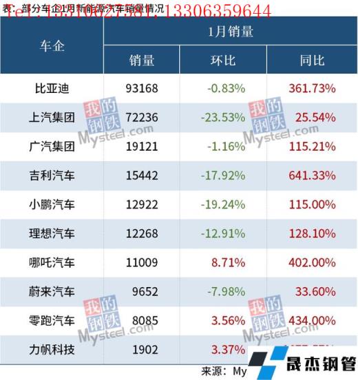 免責聲明:本網站(山東聊城晟杰無縫鋼管廠m.yztongfa.com)刊載的“1月10家車企新能源汽車銷量同比大增”等均源于網絡,版權歸原作者所有,且僅代表原作者觀點,本文所載信息僅供參考。轉載僅為學習與交流之目的,如無意中侵犯您的合法權益,請及時聯系刪除。本網站刊登此篇文章并不意味著本站贊同其觀點或證實其內容的真實性,我們不對其科學性、嚴肅性等作任何形式的保證。如果侵犯了您的版權,請盡快聯系我們予以撤銷,謝謝合作!