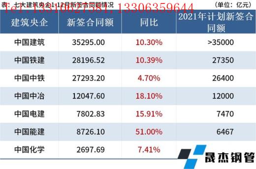 免責聲明:本網站(山東聊城晟杰無縫鋼管廠m.yztongfa.com)刊載的“7家建筑央企2021年新簽合同總額超12萬億元,同比增長12%”等均源于網絡,版權歸原作者所有,且僅代表原作者觀點,本文所載信息僅供參考。轉載僅為學習與交流之目的,如無意中侵犯您的合法權益,請及時聯系刪除。本網站刊登此篇文章并不意味著本站贊同其觀點或證實其內容的真實性,我們不對其科學性、嚴肅性等作任何形式的保證。如果侵犯了您的版權,請盡快聯系我們予以撤銷,謝謝合作!