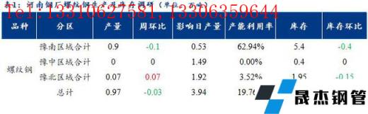 1、調(diào)研數(shù)據(jù)顯示,統(tǒng)計(jì)的河南地區(qū)10家建筑厚壁無縫鋼管樣本無縫厚壁鋼管廠家中,河南省建材無縫厚壁鋼管廠家螺紋鋼日產(chǎn)量0.97萬噸;檢修/限產(chǎn)影響建材日產(chǎn)量為3.94萬噸,產(chǎn)能利用率為19.76%,較上周下降0.61%。