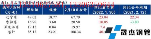 各主流城市分倉(cāng)庫(kù)來(lái)看,春節(jié)后兩周以來(lái)沈陽(yáng)市場(chǎng)幾大主流倉(cāng)庫(kù)增庫(kù)較多;大連市場(chǎng)到貨節(jié)奏一般、正常累庫(kù);吉林省內(nèi)長(zhǎng)春兩大主流倉(cāng)庫(kù)現(xiàn)貨庫(kù)存也在增加。從無(wú)縫厚壁鋼管廠家產(chǎn)量及庫(kù)存來(lái)看,本周區(qū)域內(nèi)樣本無(wú)縫厚壁鋼管廠家總產(chǎn)量47.7萬(wàn)噸,較上周降1.20萬(wàn)噸;廠庫(kù)總量14.19萬(wàn)噸,與上周變化不大,僅增了0.08萬(wàn)噸,社庫(kù)則大幅度增了40.52萬(wàn)噸,目前區(qū)域內(nèi)主導(dǎo)無(wú)縫厚壁鋼管廠家生產(chǎn)節(jié)奏與節(jié)前相比變化不大,不過(guò)下游終端仍未啟動(dòng),市場(chǎng)現(xiàn)貨消耗能力有限,社庫(kù)繼續(xù)大幅度累積,多數(shù)商戶表示正月十五后需求或有零星釋放,但真正有效的啟動(dòng)時(shí)間要等到2月底3月初了,因此在無(wú)需求的情形下,預(yù)估下周東北區(qū)域社庫(kù)或仍將繼續(xù)增加。