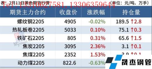 熱軋板卷:2月11日,全國24個主要城市4.75mm熱軋板卷均價5125元/噸,較上個交易日上漲46元/噸。現(xiàn)貨市場早盤報價大幅上漲,漲后市場成交較好,午后隨著盤面走弱,現(xiàn)貨成交稍有放緩,現(xiàn)貨價格也出現(xiàn)一定程度的跟跌,但跌幅不大,弱于盤面跌幅。目前市場庫存雖在持續(xù)累積中,但累庫幅度低于往年同期,對比往年春節(jié)后情況來看屬于低庫存狀態(tài),所以目前低供給、低庫存屬于明牌狀態(tài),在經(jīng)歷了開門紅行情后,價格是否能維持仍需待需求恢復(fù)后的驗證結(jié)果。綜合來看,熱軋板卷價格仍將維持高位震蕩運行。