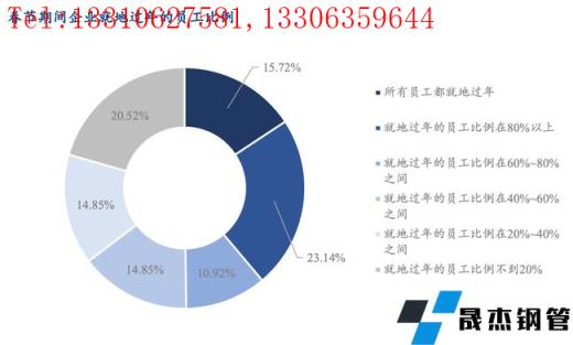 今年所有員工都就地過年的比例為15.72%,就地過年的員工比例在60%以上的企業占樣本49.78%,還有20.52%的企業就地過年員工比例不到20%。