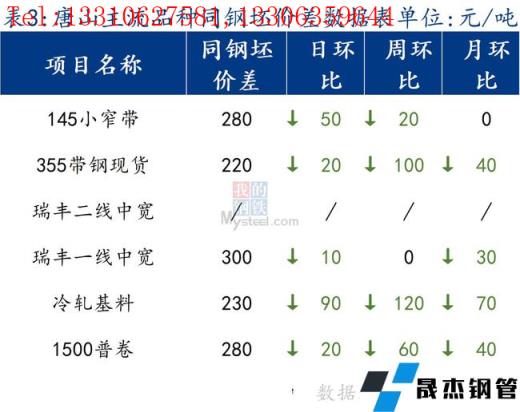 145帶鋼與鋼坯價(jià)差明顯收窄,焊管與355帶鋼價(jià)差小幅收窄。熱卷與帶鋼價(jià)差持平。