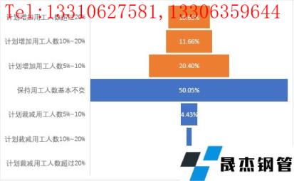從調研樣本來看,43%的調研企業反饋用工會增加,且超過20%的企業占比數為10.65,略高出去年同期,這表示大多數企業提高產出的意愿較為強烈。