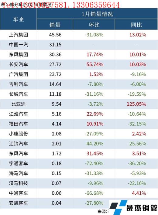 免責聲明:本網站(山東聊城晟杰無縫鋼管廠m.yztongfa.com)刊載的“1月我國汽車產銷降幅明顯,多數車企呈現雙位數下跌”等均源于網絡,版權歸原作者所有,且僅代表原作者觀點,本文所載信息僅供參考。轉載僅為學習與交流之目的,如無意中侵犯您的合法權益,請及時聯系刪除。本網站刊登此篇文章并不意味著本站贊同其觀點或證實其內容的真實性,我們不對其科學性、嚴肅性等作任何形式的保證。如果侵犯了您的版權,請盡快聯系我們予以撤銷,謝謝合作!