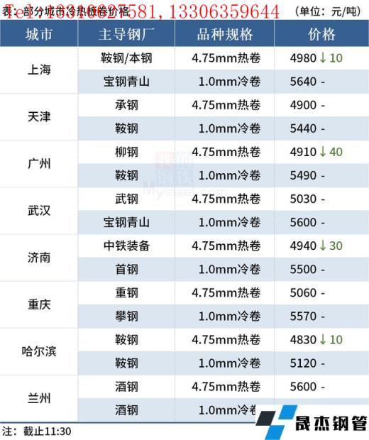 ◎樂從:17日早盤熱卷市場價格下跌40,4.75以上普柳燕4910-4920,2.75普4980-5130錳5100-5120。(單位:元/噸)