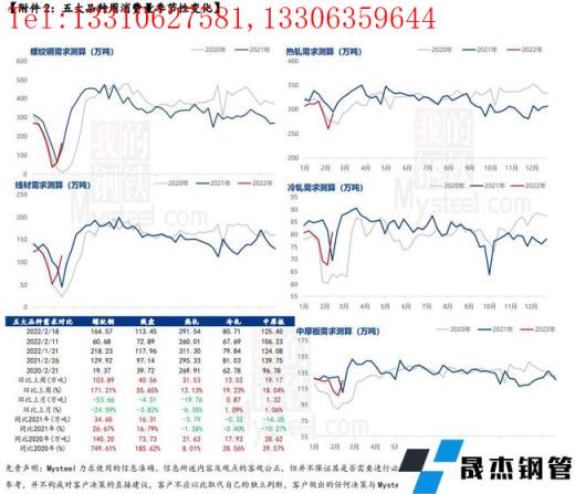 本周五大品種除線材,均有回升,且以螺紋鋼表現最為突出。線材本周減量原因在于短流程企業復產增量不及長流程企業延長檢修周期和品種轉產導致的減量,進而使得整體供應下降。其余品種增量的主要原因在于,短流程企業復工復產加快進程,長流程鐵水產量逐步恢復,進而使得供應水平有所恢復。綜合來看,目前供應水平仍處相對低位,部分企業受冬奧會限產影響還未開始執行復產計劃,后期供應仍有增量預期,但因冬奧會結束即迎來殘奧會,后期增量空間仍相對有限。