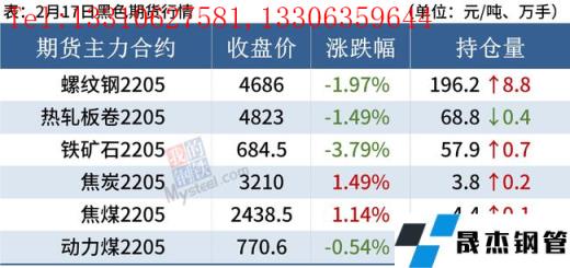 熱軋板卷:2月17日,全國24個主要城市4.75mm熱軋板卷均價5010元/噸,較上個交易日下跌18元/噸。目前華北、華中地區(qū)供應(yīng)有小幅縮減的情況,但需求持續(xù)萎靡,供需兩弱情況持續(xù)。后市應(yīng)關(guān)注各地限產(chǎn)政策以及冬奧會后需求是否得到恢復(fù),價格或?qū)⑹芄┬枨闆r限制。綜合來看,預(yù)計18日熱軋板卷價格或繼續(xù)震蕩偏弱為主。