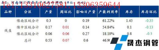 1、調研數據顯示,統計的河南地區10家建筑厚壁無縫鋼管樣本無縫厚壁鋼管廠家中,河南省無縫厚壁鋼管廠家線盤日均產量0.53萬噸,較上周小幅增加0.07萬噸;檢修/限產影響建材日產量為0.6萬噸,產能利用率46.9%,較上周上升6.19%。