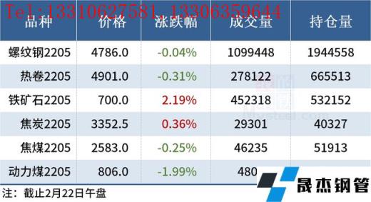 免責聲明:本網站(山東聊城晟杰無縫鋼管廠m.yztongfa.com)刊載的“2022年02月22日午報:鋼價多數上漲,黑色期貨高開低走”等均源于網絡,版權歸原作者所有,且僅代表原作者觀點,本文所載信息僅供參考。轉載僅為學習與交流之目的,如無意中侵犯您的合法權益,請及時聯系刪除。本網站刊登此篇文章并不意味著本站贊同其觀點或證實其內容的真實性,我們不對其科學性、嚴肅性等作任何形式的保證。如果侵犯了您的版權,請盡快聯系我們予以撤銷,謝謝合作!