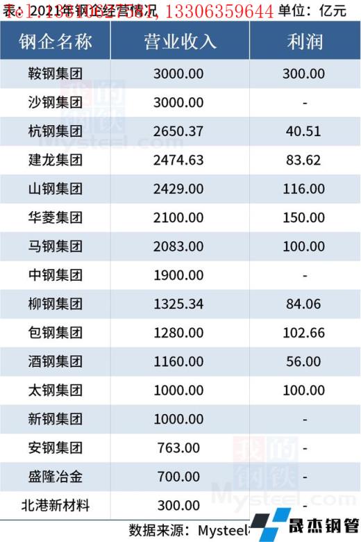免責聲明:本網站(山東聊城晟杰無縫鋼管廠m.yztongfa.com)刊載的“16家鋼企2021年營收超2.7萬億元”等均源于網絡,版權歸原作者所有,且僅代表原作者觀點,本文所載信息僅供參考。轉載僅為學習與交流之目的,如無意中侵犯您的合法權益,請及時聯系刪除。本網站刊登此篇文章并不意味著本站贊同其觀點或證實其內容的真實性,我們不對其科學性、嚴肅性等作任何形式的保證。如果侵犯了您的版權,請盡快聯系我們予以撤銷,謝謝合作!