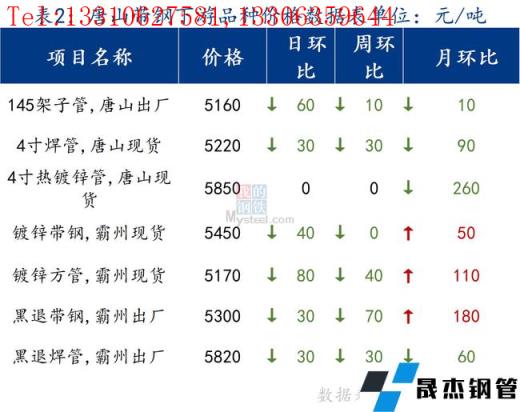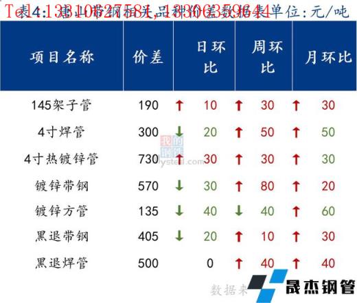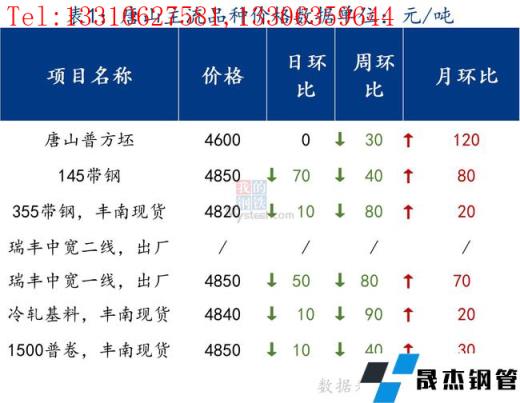 今日唐山管帶價格回落,其中355帶鋼價格較上一交易日跌10元/噸,145帶鋼較上一交易日跌70元/噸,焊管價格跌30元/噸,鍍鋅管價格持穩(wěn)。市場成交稍有增加,但整體仍然清淡。