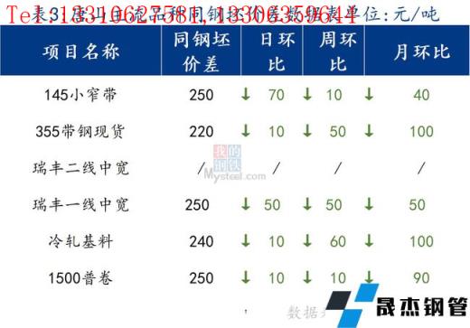 145帶鋼與鋼坯價差明顯收窄,調(diào)坯軋材在成本偏高的制約下暫緩復(fù)產(chǎn),市場成交不佳,價格繼續(xù)回落。焊管與355帶鋼價差稍收窄。熱卷與帶鋼價差回歸正區(qū)間。