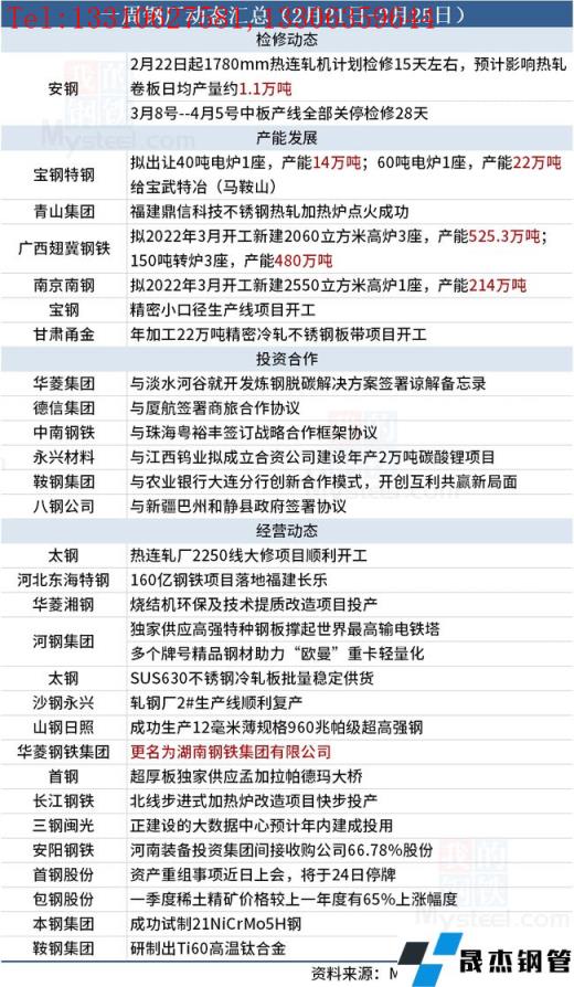 據不完全統計,本周(2月21日-2月25日)有1家無縫厚壁鋼管廠家發布檢修動態,具體如下: