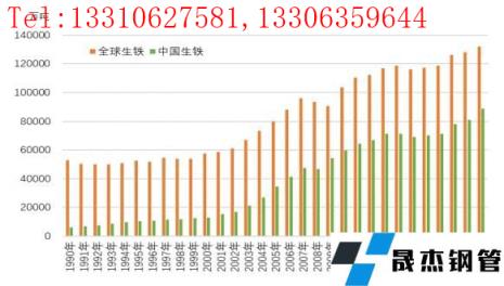 1990年-2020年全球和中國(guó)煉鋼生鐵產(chǎn)量走勢(shì)圖