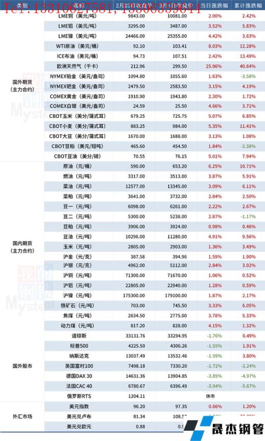 免責聲明:本網站(山東聊城晟杰無縫鋼管廠m.yztongfa.com)刊載的“受近期局勢影響大宗商品價格一覽表(3月1日)”等均源于網絡,版權歸原作者所有,且僅代表原作者觀點,本文所載信息僅供參考。轉載僅為學習與交流之目的,如無意中侵犯您的合法權益,請及時聯系刪除。本網站刊登此篇文章并不意味著本站贊同其觀點或證實其內容的真實性,我們不對其科學性、嚴肅性等作任何形式的保證。如果侵犯了您的版權,請盡快聯系我們予以撤銷,謝謝合作!