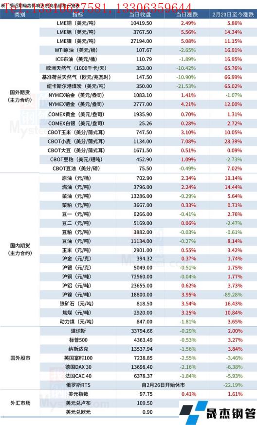 免責聲明:本網站(山東聊城晟杰無縫鋼管廠m.yztongfa.com)刊載的“受近期局勢影響大宗商品價格一覽表(3月3日)”等均源于網絡,版權歸原作者所有,且僅代表原作者觀點,本文所載信息僅供參考。轉載僅為學習與交流之目的,如無意中侵犯您的合法權益,請及時聯系刪除。本網站刊登此篇文章并不意味著本站贊同其觀點或證實其內容的真實性,我們不對其科學性、嚴肅性等作任何形式的保證。如果侵犯了您的版權,請盡快聯系我們予以撤銷,謝謝合作!