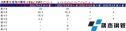 港口5:東北大港口,1月2月厚壁無縫鋼管總計出口量約70萬噸,較2021年同期小幅減少1.4萬噸。
